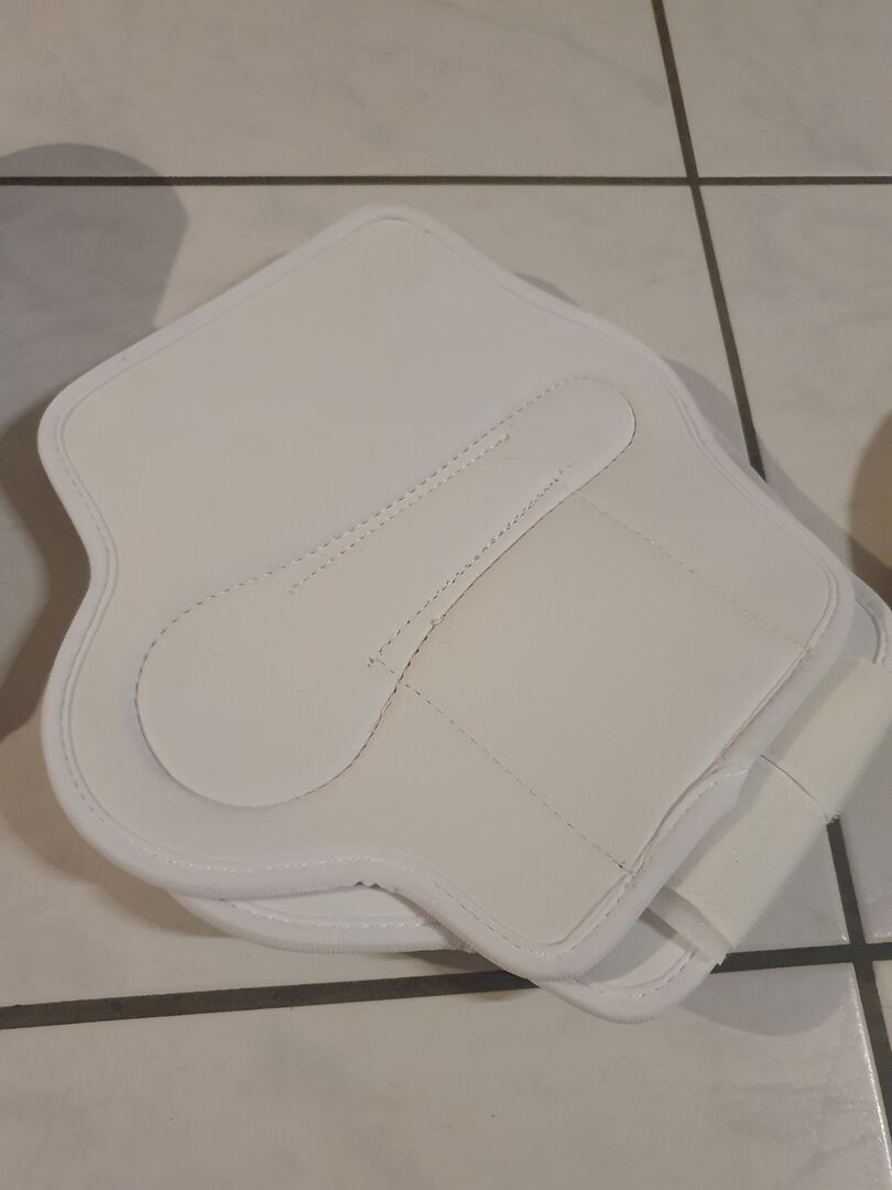 - Eskadron saddle pad, velor-like top. Size DL - Horse Friends gaiters for front in M - Eskadron gaiters for back in white without size indication, was intended for a warmblood with 1.63 stick measure - Esperado fly hood in WB, runs small - Eskadron Softslate bell boots in pearlgrey, unused but label torn off