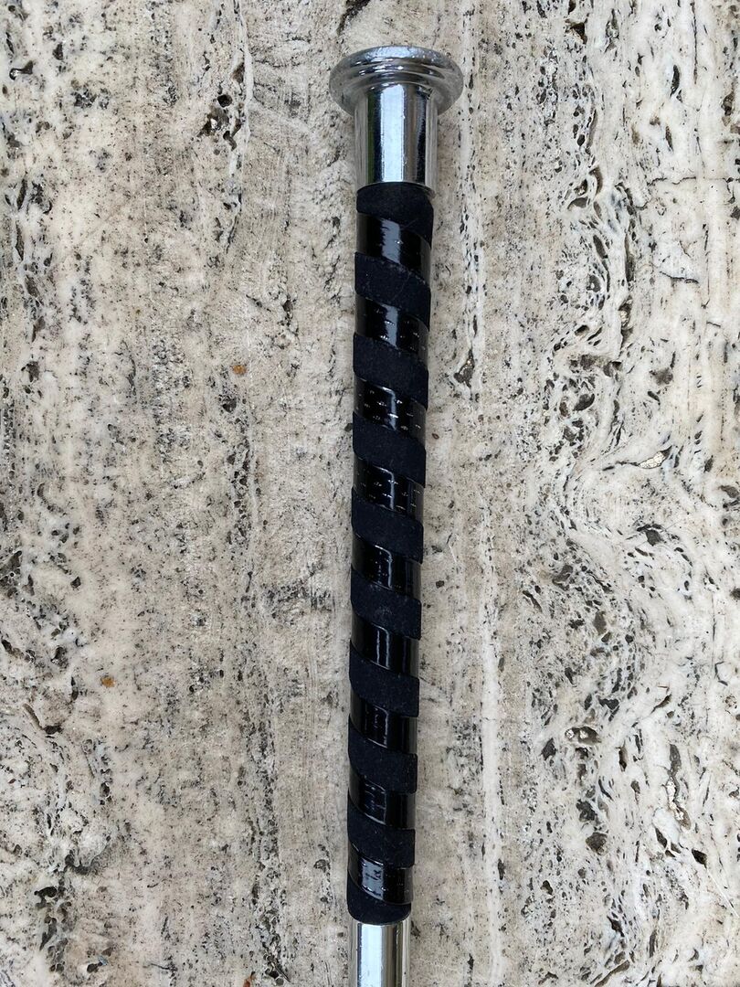 Dressage whip from Krämer - Black dressage whip from Krämer, which is 100cm(1m) long. No strong signs of use, except for the slightly disappearing silver "varnish" on the handle (see first photo), which does not bother the rider at all. Price negotiable!