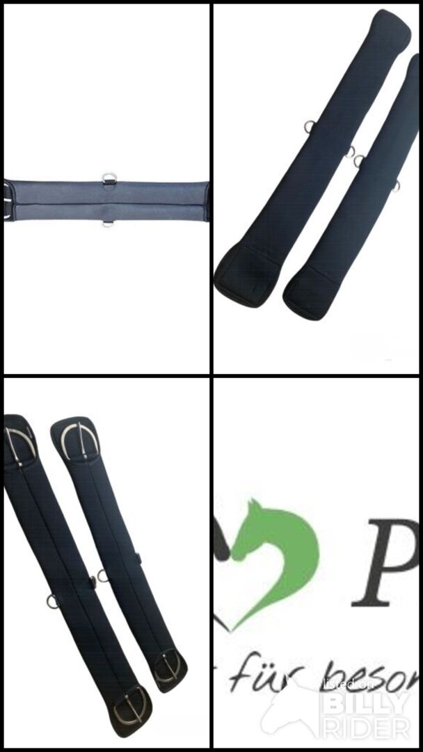 - Soft neoprene - All-round padded shoulder strap (no pressure or chafing edges) - Eyelets for auxiliary reins - The girth buckles are lined with neoprene, providing additional protection against pressure - Super easy to clean