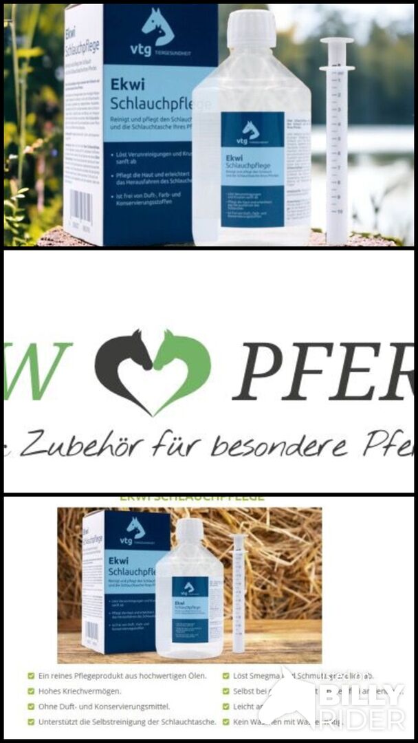 Ekwi Tube Care gently removes the smegma, making it easier for the horse to remove and insert the tube. The low-viscosity oil in Ekwi Hose Care flows apart quickly and over a large area, distributing itself evenly in the hose pocket and over the hose.