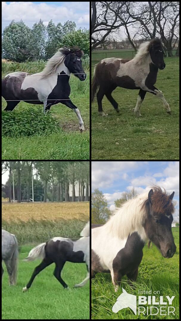 She has full papers, has been dewormed several times, vaccinated against tetanus, gets minerals in winter and knows the vet, farrier and is easy to lead. From a great Icelandic-bred dam who is well broken in. So no wild horses,) Stjarna (gray pinto) 4 gaited, with very nice movements. Now already around 1.38 cm tall. I will be happy to provide more information if you are seriously interested. She can also stay with us for breeding.