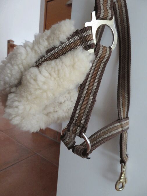 Top Halfter von Equest, Gr. WB, Schnallen messing, sieht farblich absolut schön an einem Fuchs aus!! Nur 2-3 Mal benutzt, das Lammfell ist noch so kuschelig weich wie am ersten Tag. Versand als Päckchen für 4,50