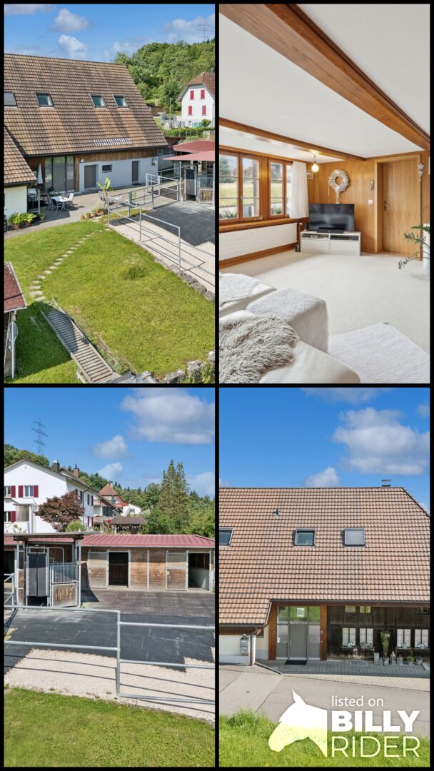 EQUESTRIAN PROPERTY WITH TWO RESIDENTIAL UNITS AND THE POSSIBILITY OF INDIVIDUAL HORSE KEEPING - This high-quality equestrian property offers you numerous possibilities on a plot area of 10,579 m². Of this, 1,218 m² is located in residential zone 1 and 9,361 m² in the agricultural zone (subject to agricultural land law BGBB).