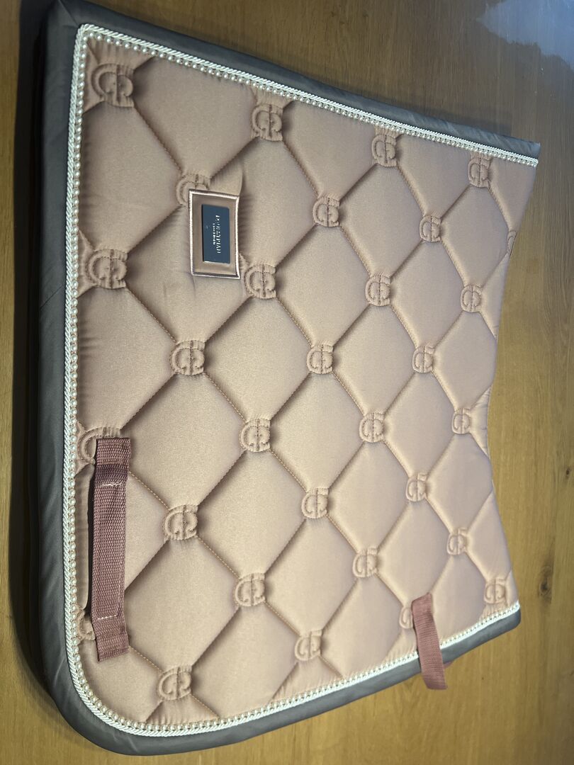 I am offering a completely new Equestrian Stockholm saddle pad in a gorgeous shade of pink. It is one of the particularly elegant models and looks incredibly high-quality thanks to its light-colored cord and the fine pearl edging, which gives the saddle pad a luxurious, unique look.