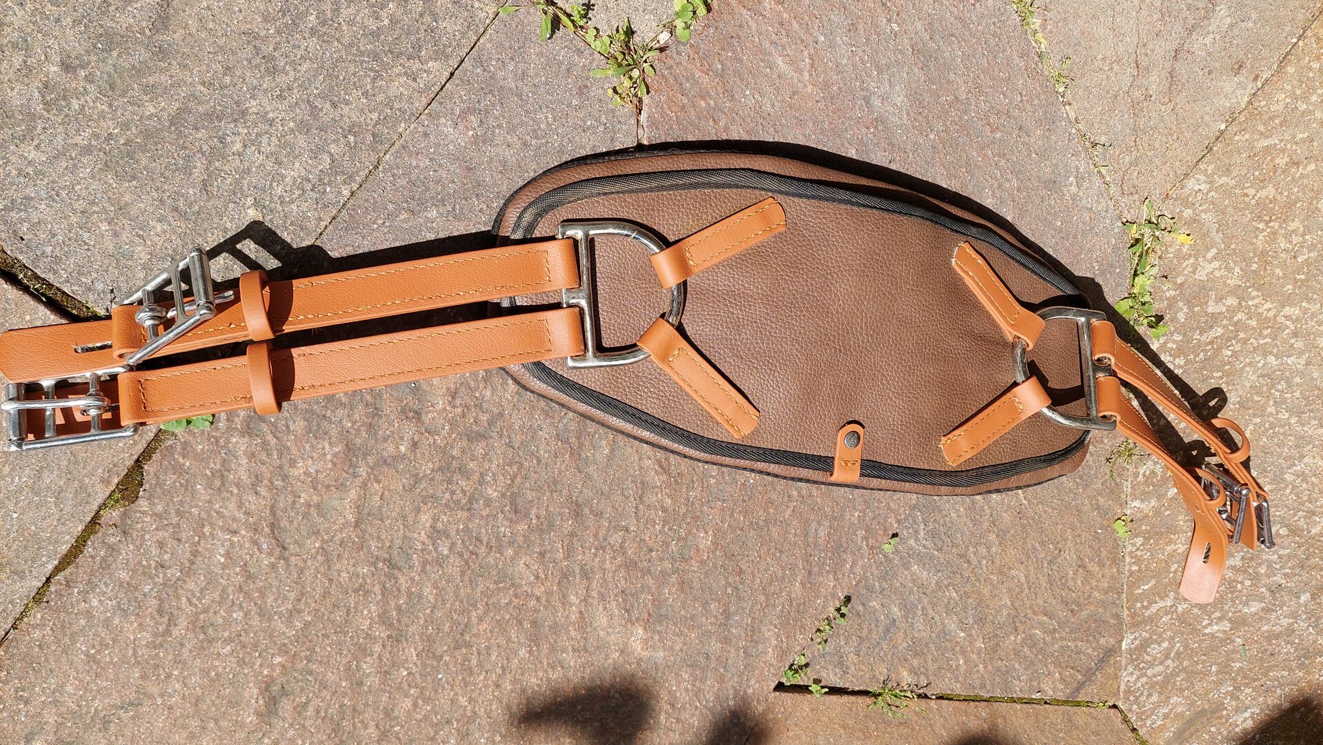 Equimero short girth saddle girth 41/85 cm - I am selling a used Equimero short girth, total length 85 cm, elbow size approx. 41 cm, fittings: silver, girth material Biothane, belly part: Equimero-Leikleda/Airmesh, NP 244 EUR, new purchase 12/2020. Private sale, no guarantee/warranty or return. Price 65 EUR including shipping.