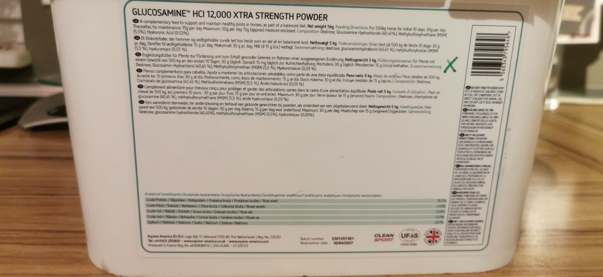 Hi Nicole, I am interested in your ad 'Equine America Glucosamine HCI 12,000 2,5 KG'. Please contact me! 😊