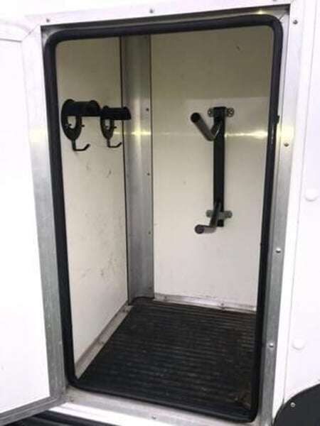 EQUITREK Star-Treka - Excel - Horse trailer with living compartment - With a heavy heart, I am selling a new EQUITREK Star-Treka in the top Excel version due to emigration, as we unfortunately hardly use it any more. The trailer is always under cover. Problem-free approval in the EU thanks to ECE homologation! Supplement to Excel version: Leather seats Version with seating group (double bed) "High gloss" surfaces The new price of this version is over 33000. Equipment: Exterior: Aerodynamic fiberglass front Spare wheel and bracket Galvanized steel chassis Lockable coupling Independent suspension Six fully braked wheels Built in ISO9001 factory Large front storage space Two outer tie-down rings Living area: Refrigerator Electric toilet with flush Large interior light with additional spotlights Three opening windows and skylight roof ventilation Kitchenette Toilet area Matching curtains Large front window Electric water supply Leisure battery Mirrors Horse area: Bright and spacious interior Full-width padded breast bar High-impact composite running boards Sturdy aluminum floorboards Non-slip rubber ramp Two saddle holders and two bridle holders Composite panels Adjustable partition wall with PVC apron to the floor Separate horse area Additional ventilation window Grooming compartment with lighting Tack room with lighting Head divider White, easy-to-clean safety loading doors Upholstery for partition wall Horse shower Two tie rings for horse and hay net Five opening windows with skylight and roof ventilation Interior light Surveillance camera Wheel clamp (anti-theft device) Additional rear lights