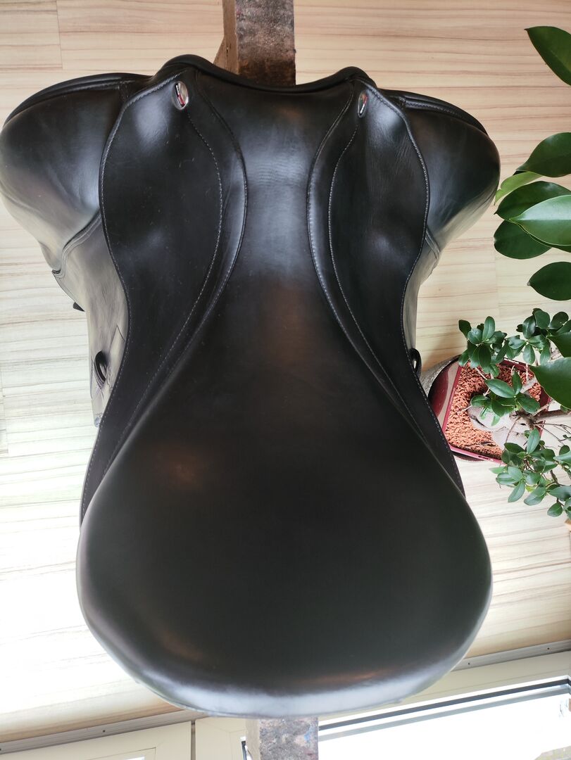 Unfortunately, the chamber has become too narrow for my horse. The saddle was regularly serviced by Christoph Hubertus. The saddle panel was moved back for better shoulder freedom as with Passier CSH.