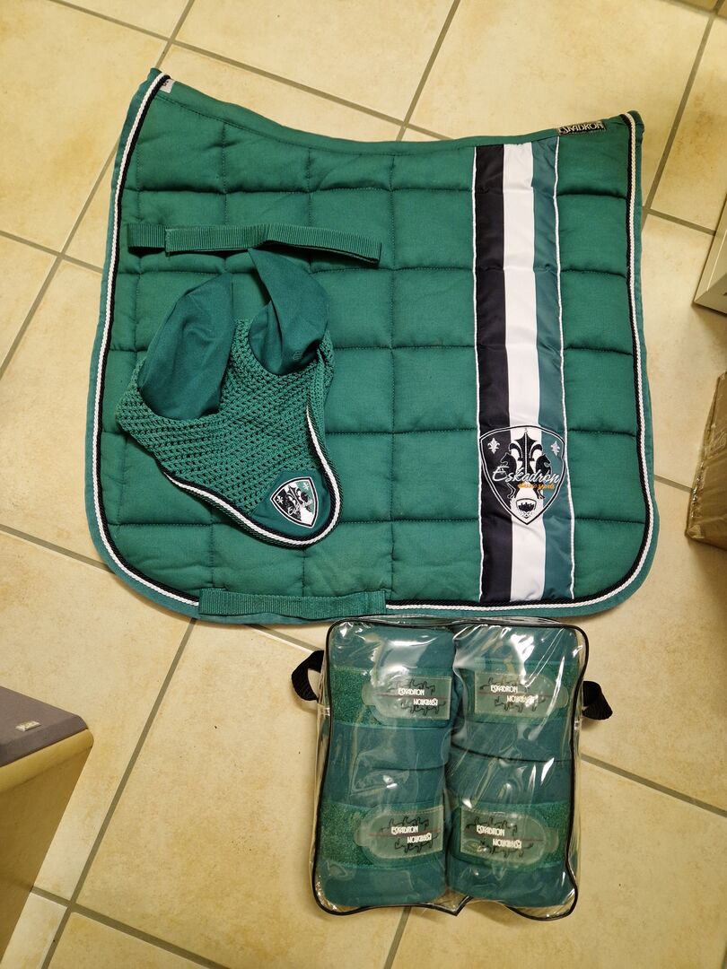 Eskadron Saddle Pad Classic Sports Big Square- emerald green , Dressage - Hello I offer here a very well preserved set of the brand Eskadron in emerald green and the size WB. The saddle pad was at most 2 times under the saddle. The other two things are New!!! I do not want to give them away for an otopical price. I would like a fair offer. Only to be given away as a set !!!