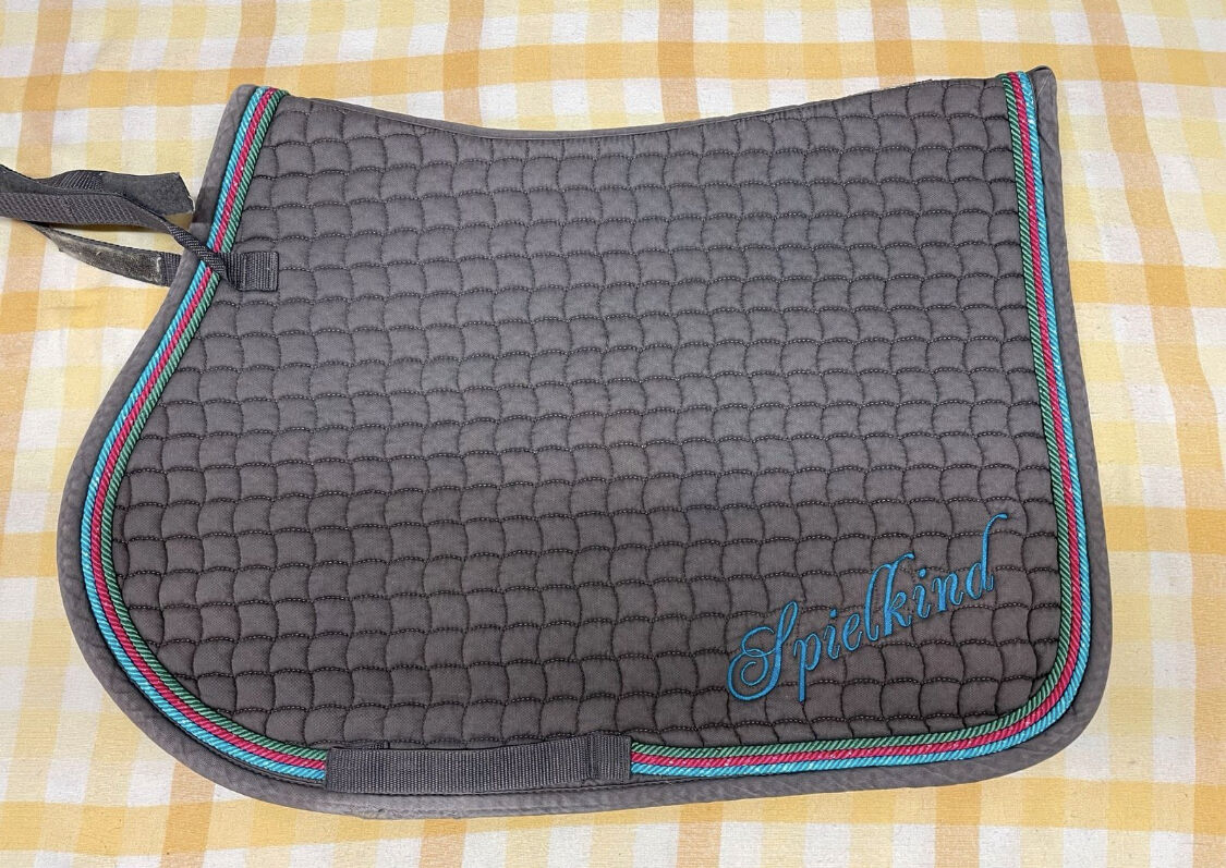 Eskadron VS Saddle Pad & HV Polo Bandages WB - Due to equestrian abandonment I sell my gray eventing saddle pad from Eskadron with embroidery "Spielkind". It was little used, so it has only slight signs of wear.