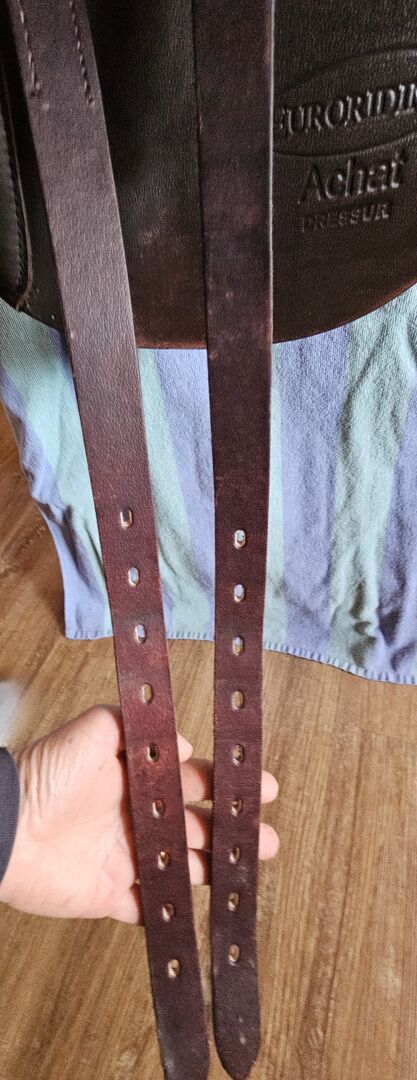 Hi there, unfortunately I have to part with my beautiful dressage saddle as I can no longer sit in it due to an injury. It has a 34 mm chamber and has not yet been altered, it has French panels - these are in perfect condition, the padding is excellent - no knots in the wool. There are also two staples for attaching a pannier. I would also be happy to swap for a Deuber El Campo in S3 shorty. Also included is the original saddle cover in a high-quality design, lined and water-repellent. The saddle is in immaculate condition has always been stored warm and dry and has been used very little - has normal signs of use - see photos. I will add a pair of stirrup leathers free of charge. Shipping is no problem for me and costs approx. 25 euros. As this is a private sale, I accept no guarantee/liability and no returns.