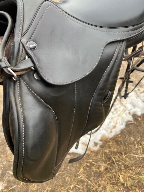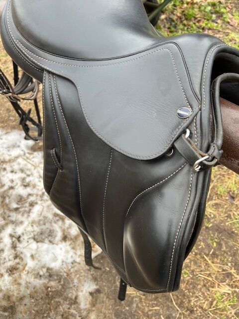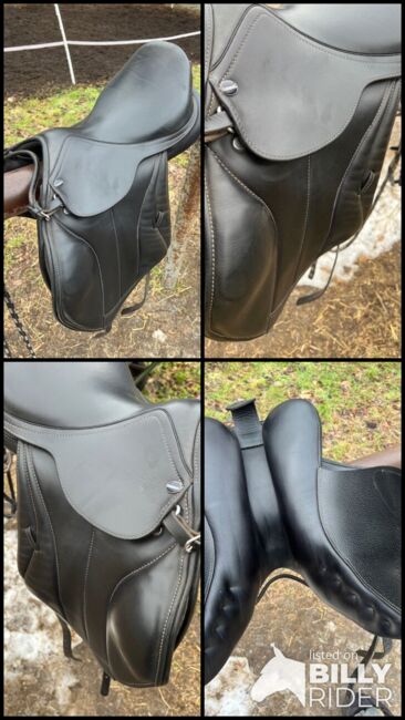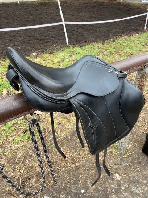 Ich verkaufe meinen Euroriding Romulus Vielseitigkeitssattel in der Größe 16 Zoll, Kammerweite W (Wide), da er bei meinem aktuellen Pferd nicht mehr zum Einsatz kommt. Details: – Marke/Modell: Euroriding Romulus – Sitzgröße: 16” – Kammerweite: W (Wide) – kalt verstellbar durch den Sattler – Farbe: Schwarz – Baum: Kunststoffbaum, anpassbar – Kissen: kurze, französische Kissen – ideal für Pferde mit kurzem oder sensiblem Rücken Zustand: Der Sattel wurde vor ca. 2 Jahren neu beim Sattler gekauft (Neupreis inkl. Anpassung: 2.000 €). Er wurde regelmäßig gepflegt und befindet sich in einem sehr guten gebrauchten Zustand: Das Leder ist weich und griffig, keine Risse, Nähte und Strupfen sind intakt. Keine sichtbaren Beschädigungen. Abwicklung: – Standort: Berlin – Probereiten nach Absprache gerne möglich – Versand innerhalb Deutschlands möglich (gut gepolstert, mit Versicherung, auf Kosten des Käufers) – Zahlung bei Abholung: Bar oder Überweisung – Bei Versand: Überweisung vor Versand Bei Fragen, weiteren Fotos oder konkreten Maßen gerne melden! Privatverkauf – keine Garantie, keine Rücknahme.