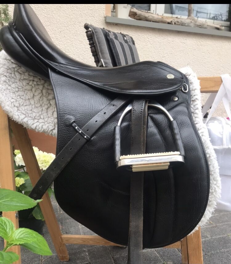 Eventing saddle focus jumping from the company Kieffer Munich, model Isar AT (anatomically deep seat). Not only in the arena, but also in the field, the Isar provides safety for the rider and is excellent to sit. It is ideal for horses with a lot of impulsion. Due to its grained leather, the saddle offers a good grip. If necessary and higher jumps, calf blocks can be attached. Since the original ones are not available, we have used Velcro thimbles from the Wintec saddle. For questions please contact 0179 9131724