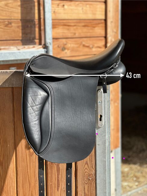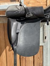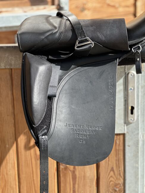 Manufacturer: Jeremy Rudge Saddlery England Model: G5 with pony tree As good as new demonstrator (2024), ridden approx. 10 times Color/Leather: Black Heritage Upholstery: Sheep's wool Features: Flat soft seat, cushion underside made of wool serge, Velcro thimbles, D-rings Accessories: Stirrup holder, protective cover Price: €1,900 incl. VAT (new price €3,900)