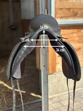 Extra short Icelandic horse saddle 40 cm 17" KW 34 trial shipment - Icelandic Icelandic saddle Töltsattel - Extra short Icelandic horse saddle for straight backs - 17" - gullet approx. 40 cm (total length 43 cm) - KW 34 - wide spine channel (see photos for dimensions). Shipped on approval (insured with DHL tracking number).