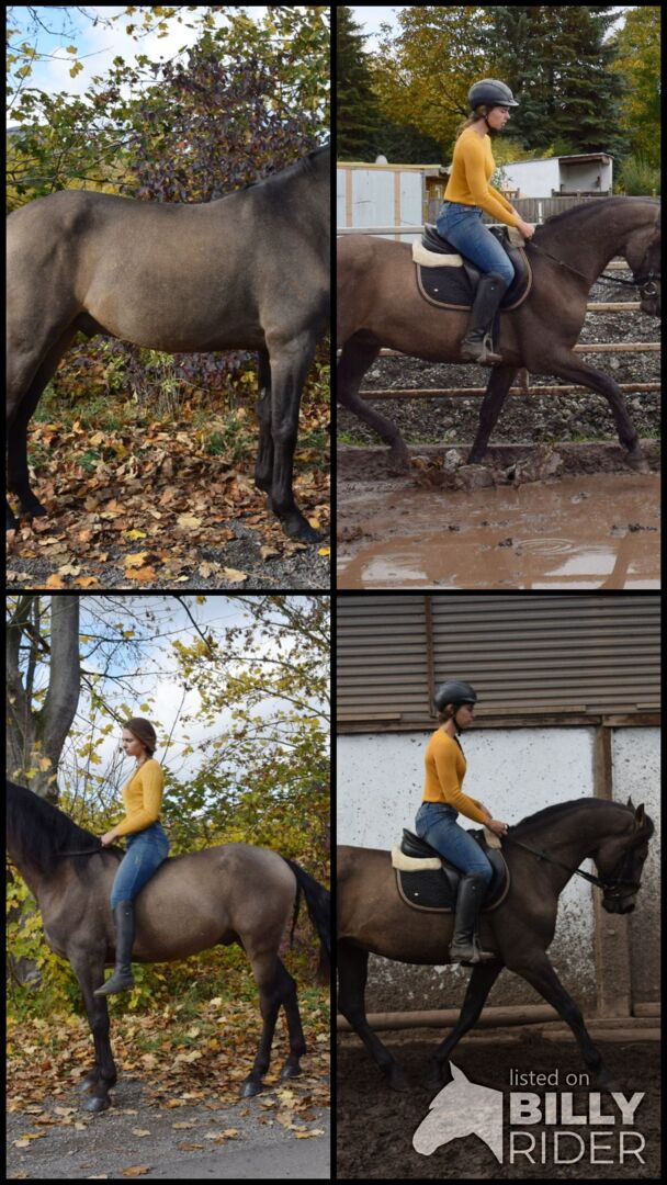 Under saddle is he is well-behaved , goes all 3 GGA , but since he is not yet so long under the saddle he needs further training of course , he is not a sleeping pill therefore not a beginner horse , some young horse experience should be brought. He is very willing to learn and always manageable , of course still needs further training. He will certainly times a great leisure partner .