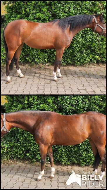 Fantastic young reining mare for ambitious non pros - Location: 35428 Langgöns Sure A Magic Cielo - a beautiful, expressive Quarter Horse mare, born on 27.04.2022, with AQHA papers and equine passport. She presents herself with a harmonious, correct conformation, is healthy, 5-panel n/n tested and currently measures approx. 145 cm. The young mare is well socialized, knows 24-hour pasture, open stable and paddock box and is uncomplicated, attentive and easy to handle in daily handling. She has a gentle, people-oriented nature, is well-behaved at the vet and farrier, regularly vaccinated and wormed and knows dogs, children, tractors and much more. Sure A Magic Cielo has a lot of talent and motivation and is easy to train. She shows good movements and comes from a very good reining pedigree, which makes her a promising young mare for the sport. Heza Sure Whiz x Lena Cielo. Paid into the EWU young horse program and ideally suited for an ambitious non-pro rider, she offers the best prerequisites for a successful sporting future. After 12 months of professional riding, she presents herself as a reliable, decent and willing to learn young mare who not only impresses in sport, but also as a warm partner in everyday life.