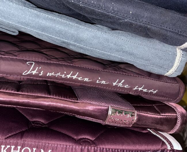 The glitter fabric (see picture 4), the back embroidery "It's written in the Stars", the chic logo and the withers padding made of fleece/faux fur stand out.