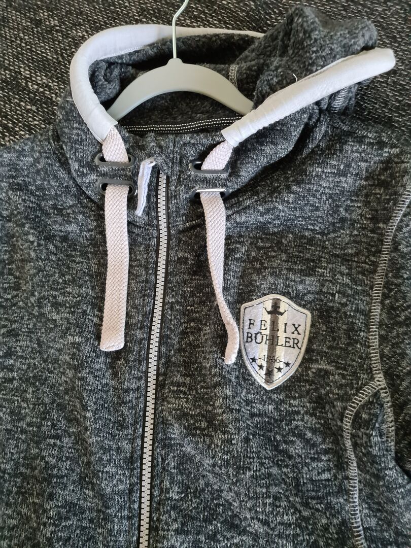 Felix Bühler Knitted Fleece Jacket M - Felix Buhler Knitted fleece jacket size M Color black grey Two zipper pockets in front Hood Two-way zipper Little to hardly worn Shipping possible against payment of postage costs. Pickup Koblenz.