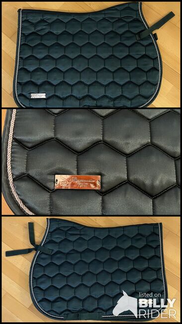 I am selling a little used saddle pad from Felix Bühler in a beautiful dark green. Very good condition as it has been little used. The color is an absolute eye-catcher and the small details refine the saddle pad even more.