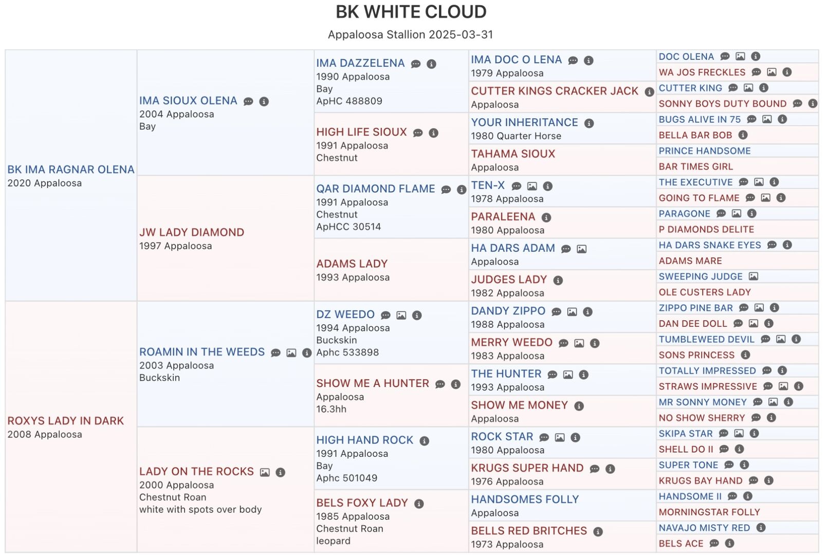 His sire is our own BK Ragnar Olena, a licensed stallion by our Ima Sioux Olena, who is also licensed.