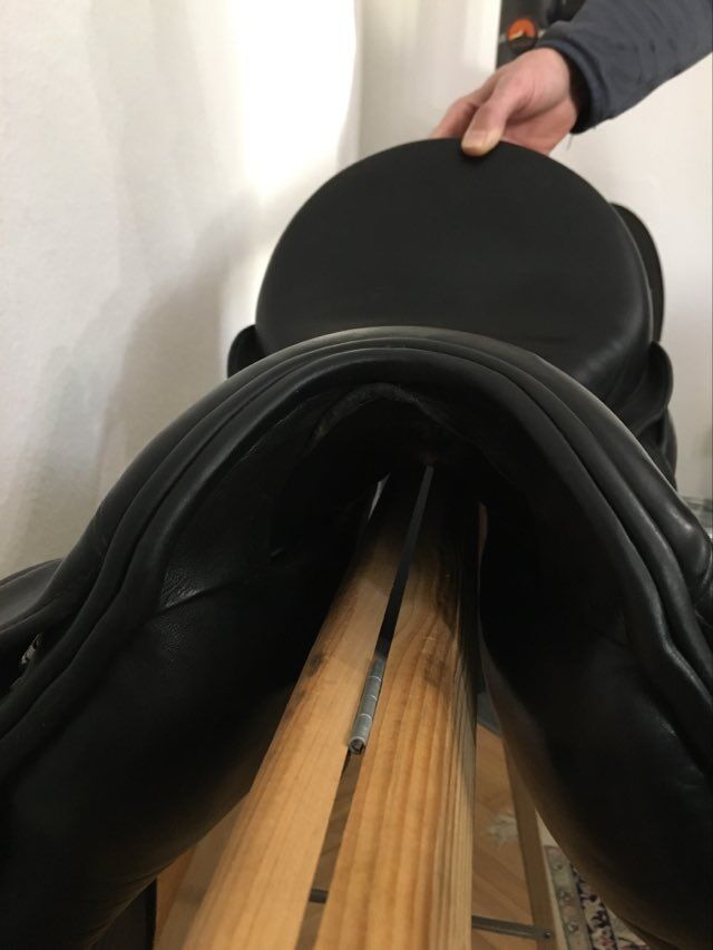 Fichtbauer dressage saddle Tentazione 18,5" - Highly comfortable dressage saddle. Deep seat, great leg position, soft for horse and rider, made by hand. The saddle shows no major signs of wear, it has always been well cared for and regularly padded. Girth straps are in perfect condition. Plenty of shoulder room thanks to the cut-back saddle flap, wide dorsal spine channel and top saddle panels for wide and soft support.