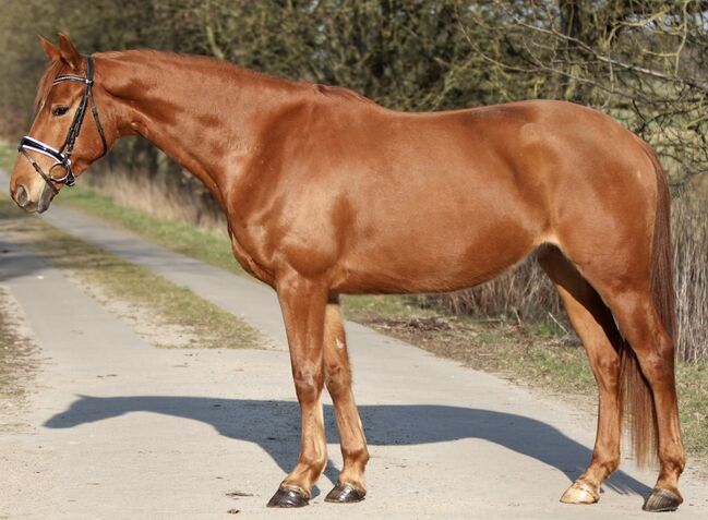 Fine mare with good GGA - For sale is a 7-year-old mare by Kaiser Milton x Weltruhm x Borneo. "Karla" is approx. 163 cm tall and is being sold directly from the breeder. She is well-behaved in handling and riding. Karla is well broken in, knows the basics of riding, but is a little unsure of herself and still needs some time. She is now looking for someone who will continue her training with her. Karla is healthy, has been wormed regularly and has been shown to the farrier. If you are looking for an unspent horse to train yourself, you will find it here.