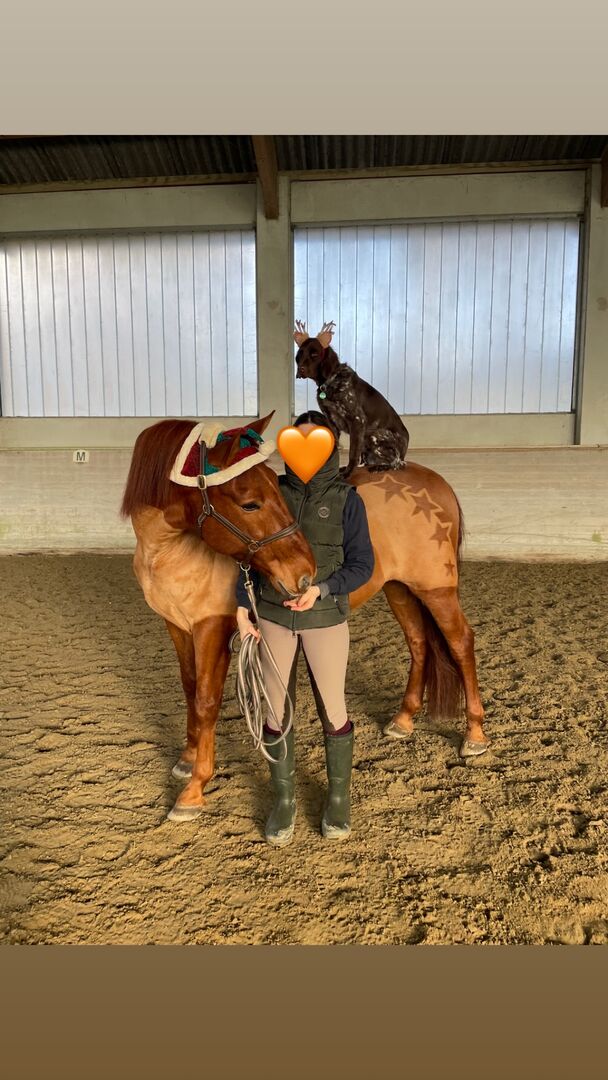 He is a real treasure in daily handling and has nerves of steel. Whether farrier, grooming area, grazing, going for a walk, driving the trailer, worming, vaccinating, washing area, .... everything is completely uncomplicated with him! He always seeks closeness to people and with his funny, inquisitive nature it is always a pleasure to be with him and to work with him. His curiosity means that everything is examined and explored. You can't avoid a horse kiss from him!