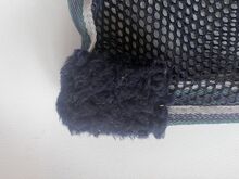 fly blanket - Fly rug in dark blue with green/grey trim. Size 135 cm. Laid on an Andalusian.