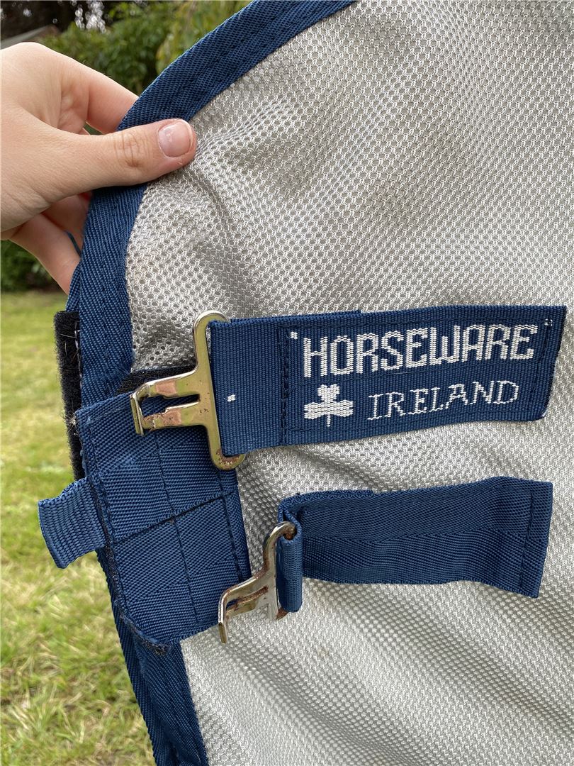 For a calm and satisfied horse - the AMIGO Bug Buster Vamoose by Horseware with natural insect repellent! The fly-repellent impregnation is odourless and colourless, non-toxic for horse and rider, does not rub off and lasts for approx. 25 washes. The close-meshed material with the Leg Arches comfort cut offers excellent protection for stable, pasture and paddock keeping. The Horseware fly blanket has three belly buckles, the original front buckle with two chest buckles and a removable neck part, which is adjusted by two velcro fasteners. Furthermore, the fly blanket is equipped with a large tail flap.