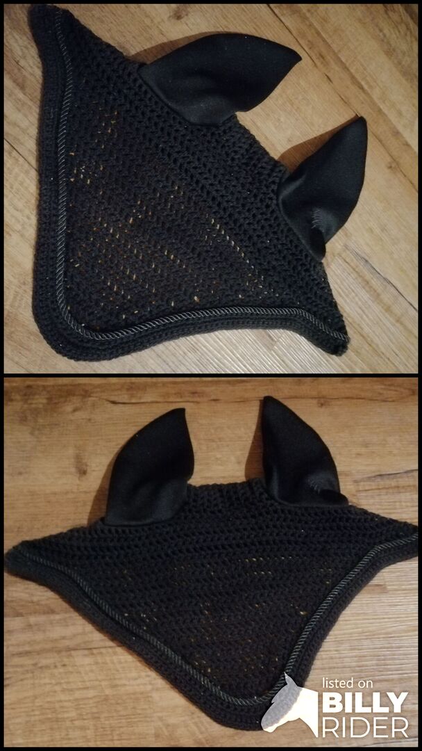 Fly Ears - Very chic black fly ears with set off dark gray decorative cord. Size warmblood, as new.