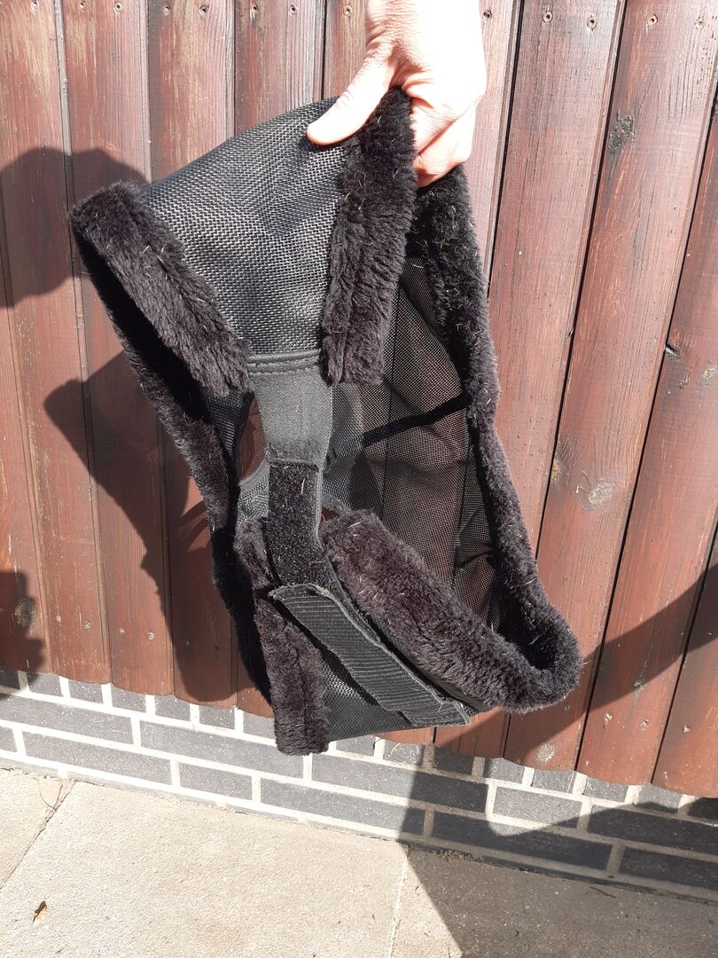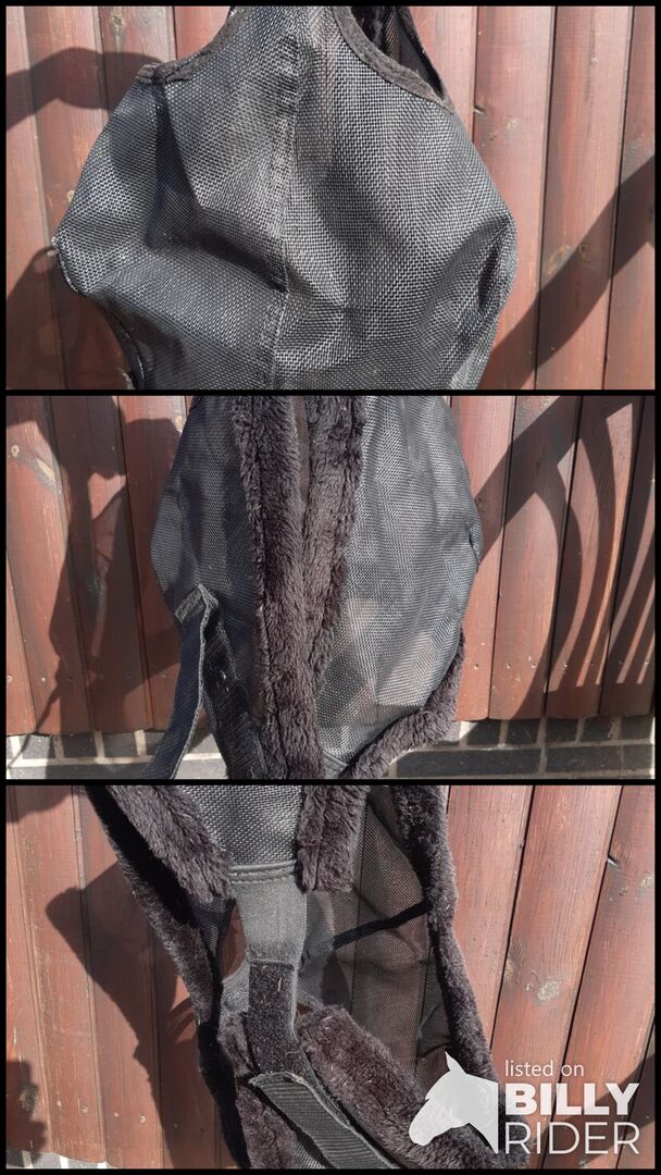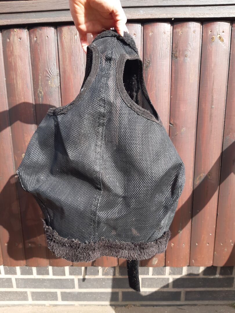 Fly mask size L with ear cut-out, black - Used, good condition, washed (but hair still sticks to the plush).
