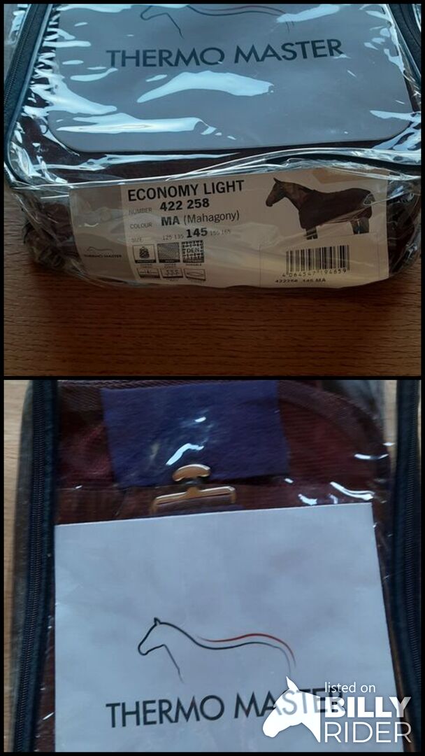 Fly rug Thermomaster 145 Mahogany - New fly rug Brand: Thermomaster Size: 145cm Color: Mahogany Model: Economy Light The rug is unused; the label is still attached. Original price: 26,90€ For sale for 20€ Shipping is possible against payment of shipping costs. PayPal among friends is also possible. This is a private sale, therefore no return and no warranty.