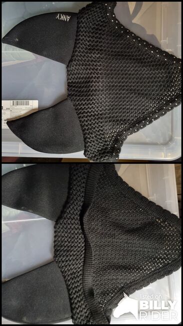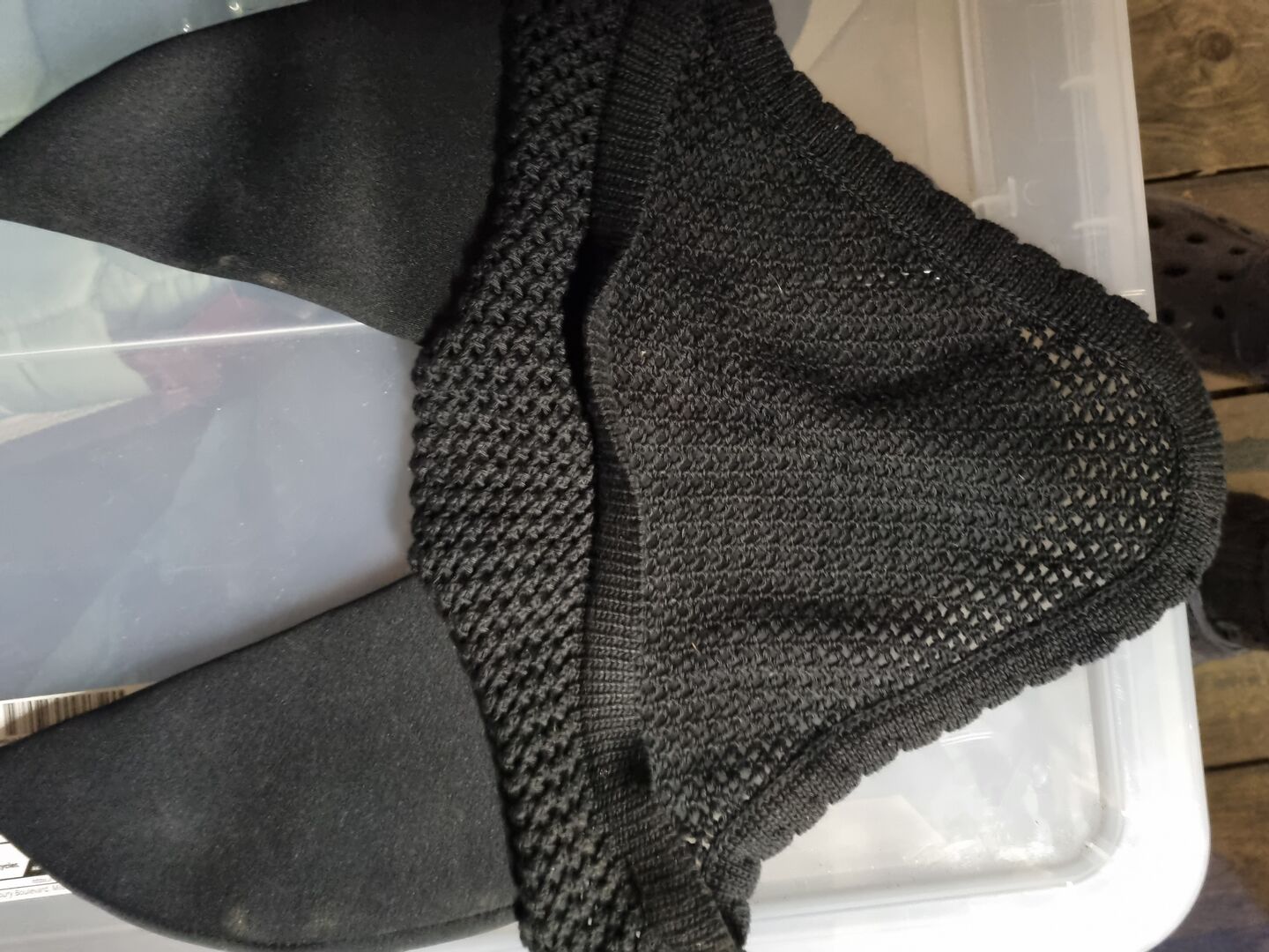 The ears are made of thicker material and help jumpy horses to concentrate better on their work.