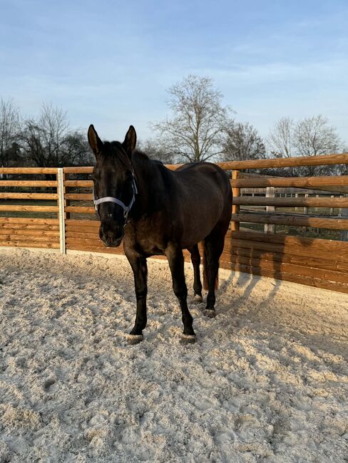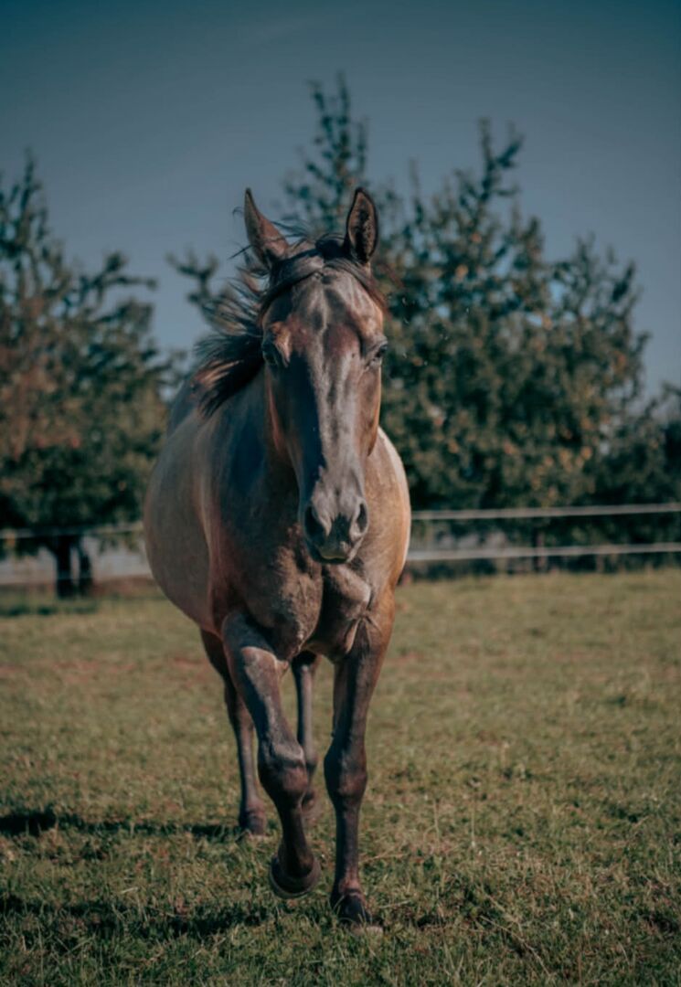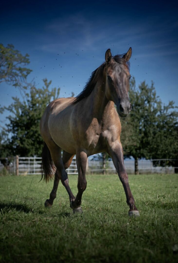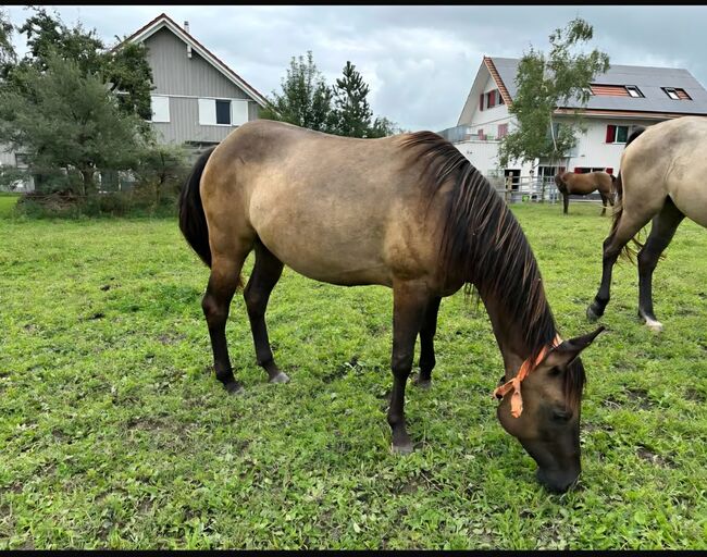 For sale is a beautiful Quarter Horse mare, born on 14.08.2022, in the rare and attractive color Grullo. Her current height is around 148 cm. She has AQHA papers and an equine passport and, with a foundation percentage of 92%, is also extremely interesting for breeding. Ultima impresses with her harmonious, correct and compact conformation and lots of expression. She is healthy, 5-panel n/n tested and walks barehoof. Her character is particularly pleasant to handle. She is well-behaved, decent, uncomplicated and very cooperative. She is attentive, people-oriented and easy to handle. Her pronounced "will to please" and her good basic temperament make her a reliable partner who is not jumpy and always reacts confidently. She is very social in the herd and is familiar with being kept in an open stable as well as in a loose box. She is also well-behaved and unproblematic at the vet and farrier. She has been regularly vaccinated and wormed and also masters trailer driving without any problems. Ultima has already received six months of basic training and, in addition to daily handling, is also familiar with the field, the horse walker and working in the round pen. She is talented and motivated, has good movements and has the best prerequisites for a sporting future. All in all, AHF Ultima La Buena is a very promising young mare, who can be promoted athletically and also impresses with her character as a reliable partner. Her high-quality foundation pedigree also makes her an exciting option for breeding. To the seller's offerlaunch