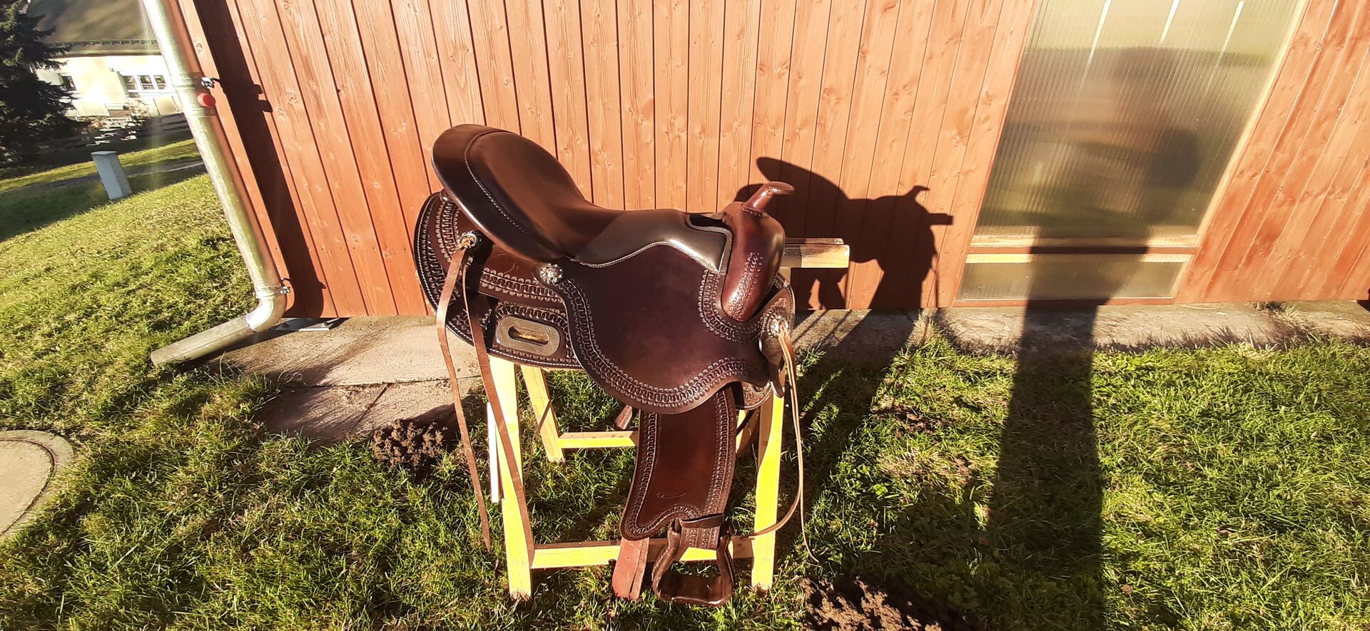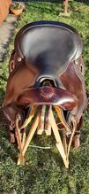 Freemax Western Saddle Short 16" - I am selling my used and very well preserved Freemax buffalo bridle made of high quality leather with a flexible inner structure made of special spray foam. This allows a good adjustment to the horse's back and distributes the rider's weight well. The saddle remains stable even when in motion. Thanks to its short skirts, this model is well suited to short horse backs without restricting freedom of movement. The saddle is currently fitted with a size 3 fork, which is interchangeable and can therefore be adapted to different horses. Color: choco (dark) Seat: smooth leather. Total length approx. 61 cm Seat size: 16" The saddle is being sold due to a new purchase.