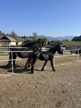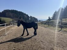 The stallion is very calm, people-oriented and willing to learn. He already knows the basics of handling, is well-behaved when being led and has a balanced temperament. A very typey young Friesian with beautiful charisma.