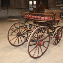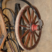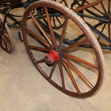 Make: / Carriage type: Gäuwägerl Carriage type: Single/twin carriage Horse type: Large horses Condition: Good condition according to age (wood in good condition, upholstery in good condition) Ready to drive: Yes, carriage is fully roadworthy and drives without any problems Color: Natural wood Scope of delivery: See pictures