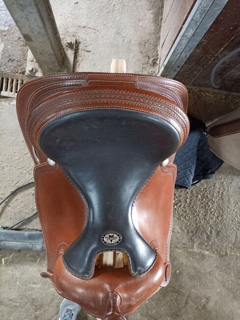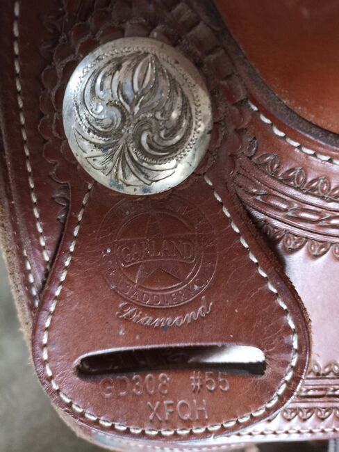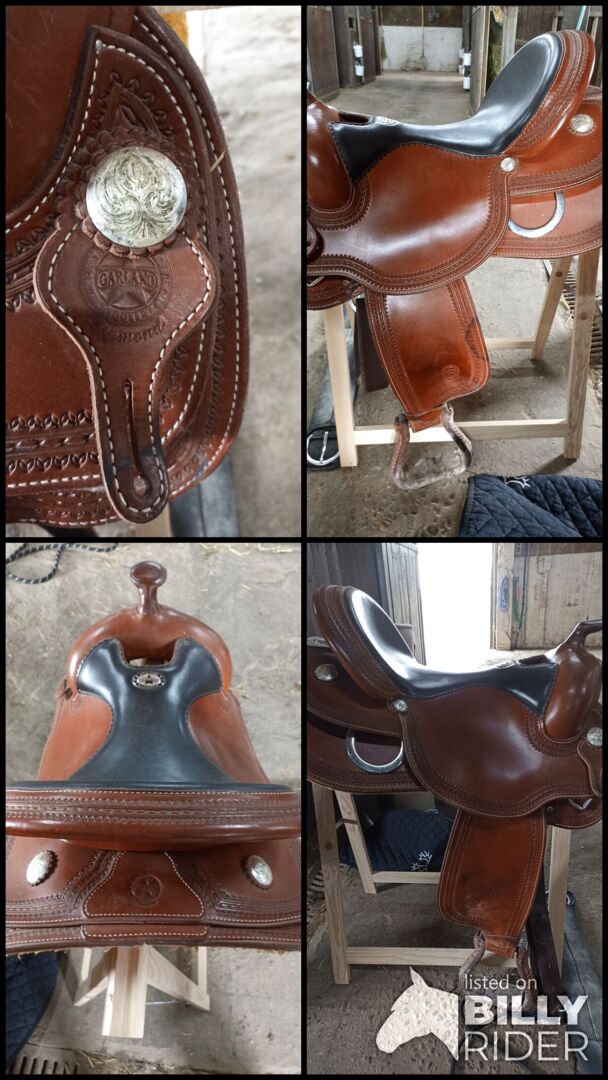 Garland Diamond Westernsattel sehr bequemer Sattel mit einer Sitz-Gelfüllung. Hat einen Kunststoffbaum und ist daher viel leichter als viele andere mit einem Holzbaum. Lag auf einem dickeren Kleinpferd. Abmessung zwischen den Conchos 33 cm.