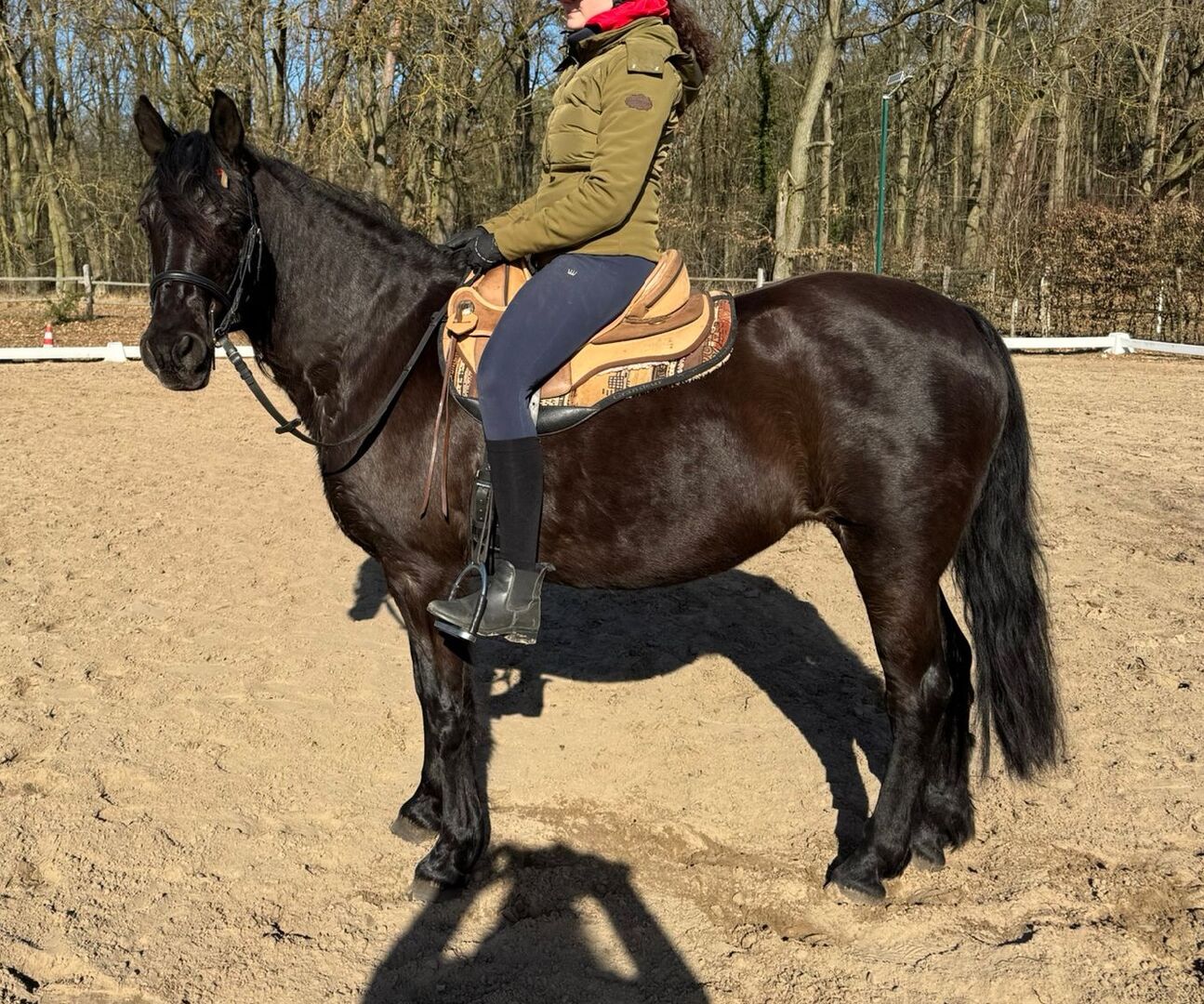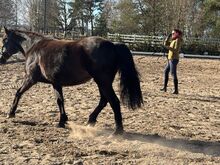 Gentle, people-oriented Missouri Fox Trotter mare for sale in loving hands - Location: 16792 Zehdenick Leonards Lillifee Go - a beautiful Missouri Fox Trotter mare, born 2009, with a height of about 148 cm and in the great color black. She is compact, correctly built and healthy. She only has an old, long healed wound on her right hock, which is a minor blemish and does not affect her in any way. Lillifee is easy to load, knows her vet and farrier, is regularly vaccinated and wormed and currently lives in an open stable. She ranks very highly in the herd. She has a very loving, people-oriented character, is open-minded, affectionate, gentle to handle and very cuddly. Despite her good behavior, she is not a horse for absolute beginners, as she has only been ridden irregularly so far due to a lack of time. She is making good progress, is willing to learn and can be further strengthened with continuous, calm encouragement. She is confident with children, dogs and in traffic. She knows ground work and is ridden recreationally. Lillifee is motivated and reliable in the field, especially when accompanied. She is less enthusiastic in the arena, but shows beautiful, tactful movements in her four gaits, which are typical of the breed and very pleasant to sit. Thanks to her good pedigree, Lillifee is also interesting for breeding, but has not yet had a foal. It is with a heavy heart that she is being sold into loving and caring hands due to a lack of time. She is a loyal partner for someone who is looking for a gentle, people-oriented mare with character, charisma and potential.