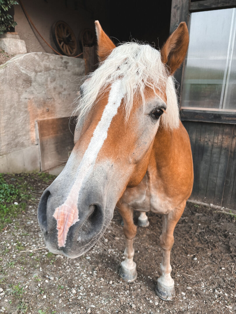 Aron is an almost 150 cm tall, 14-year-old Haflinger gelding. He knows the exercise box and is now in an open stable. This should remain so. He is very good in groups and tends to be low in rank.