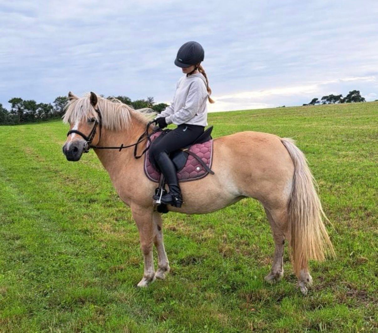 She is very well-behaved, reliable and easy to handle, even with children. Tiffy is 16 years old and about 1.40m tall. Tiffy was ridden in school for a long time and was then ridden by a girl. Due to personal circumstances, she has now been standing for about a year, which is why she first needs to be pushed a little again. Once this is done, you will have a reliable children's and leisure pony who will join in with all the fun. She is used to being kept in an open stable and is currently part of a mixed herd in which she integrates easily. Tiffy has been freshly chipped. Her passport is currently being compiled and has been submitted to the FN.
