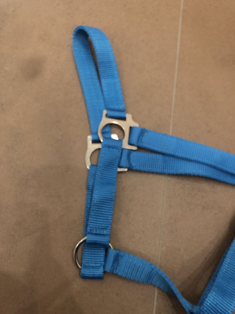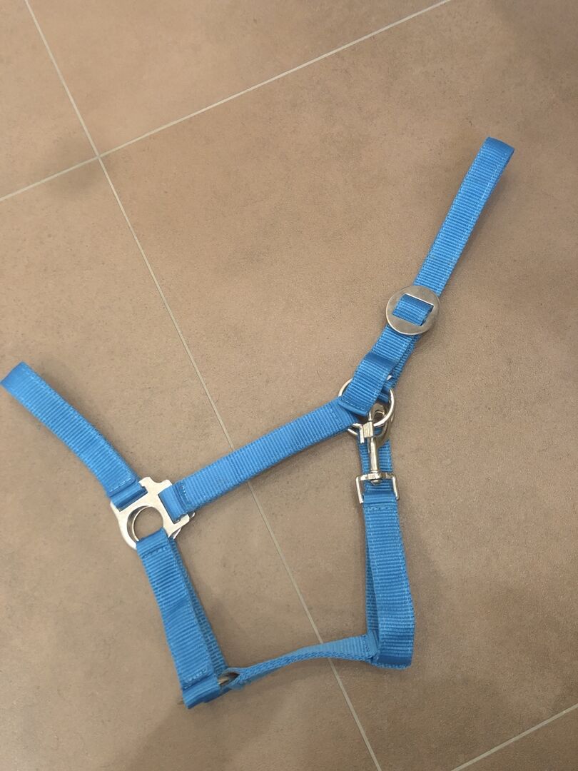 Halter color petrol gr. COB - Hereby I sell a halter in the color petrol in the size COB. At the carabiner hack is unfortunately a corner bent which is not tragic (last picture), and despite everything e.g. as a pasture halter goes, only it has unfortunately become too small for us.