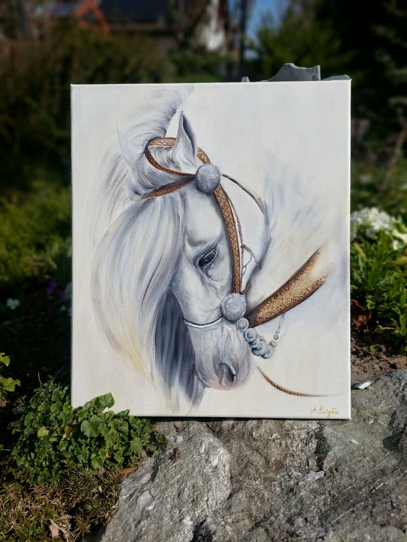 Hand-painted, one-of-a-kind horse painting. New oil painting - New oil paintings, 45/55 cm, painted by me. Secure shipping is available for 9 CHF (in a double-walled cardboard box) or you can pick them up from me.