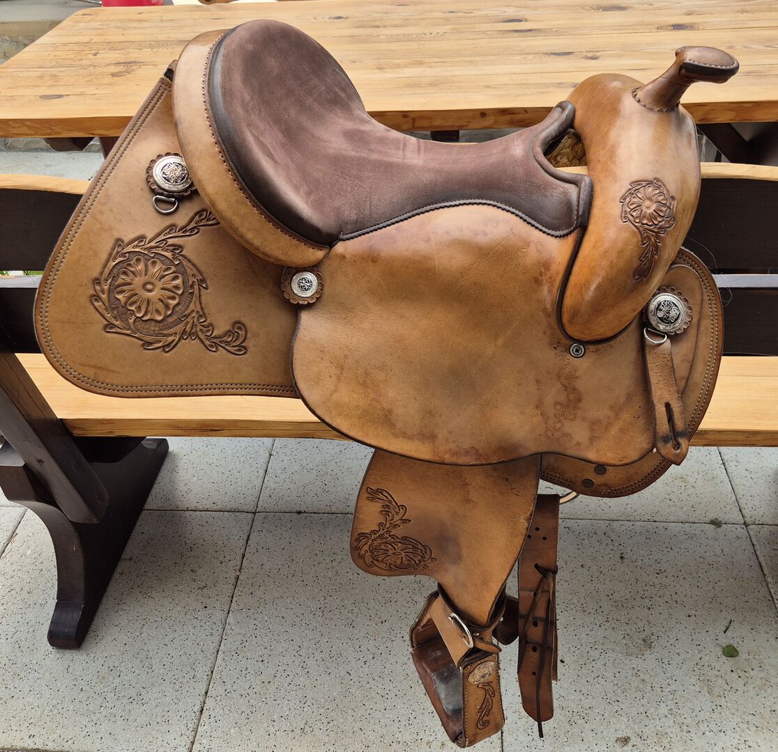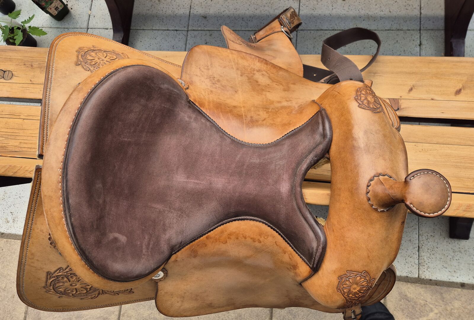 Handmade western saddle XFQ - Handmade western saddle from the Würtz saddlery XFQ 15,5" Medium curve, turned-out fender. Saddle surface is roughened. Allround saddle Also available with matching bridle, also from the Würtz saddlery. www.sattlerei-wuertz.de