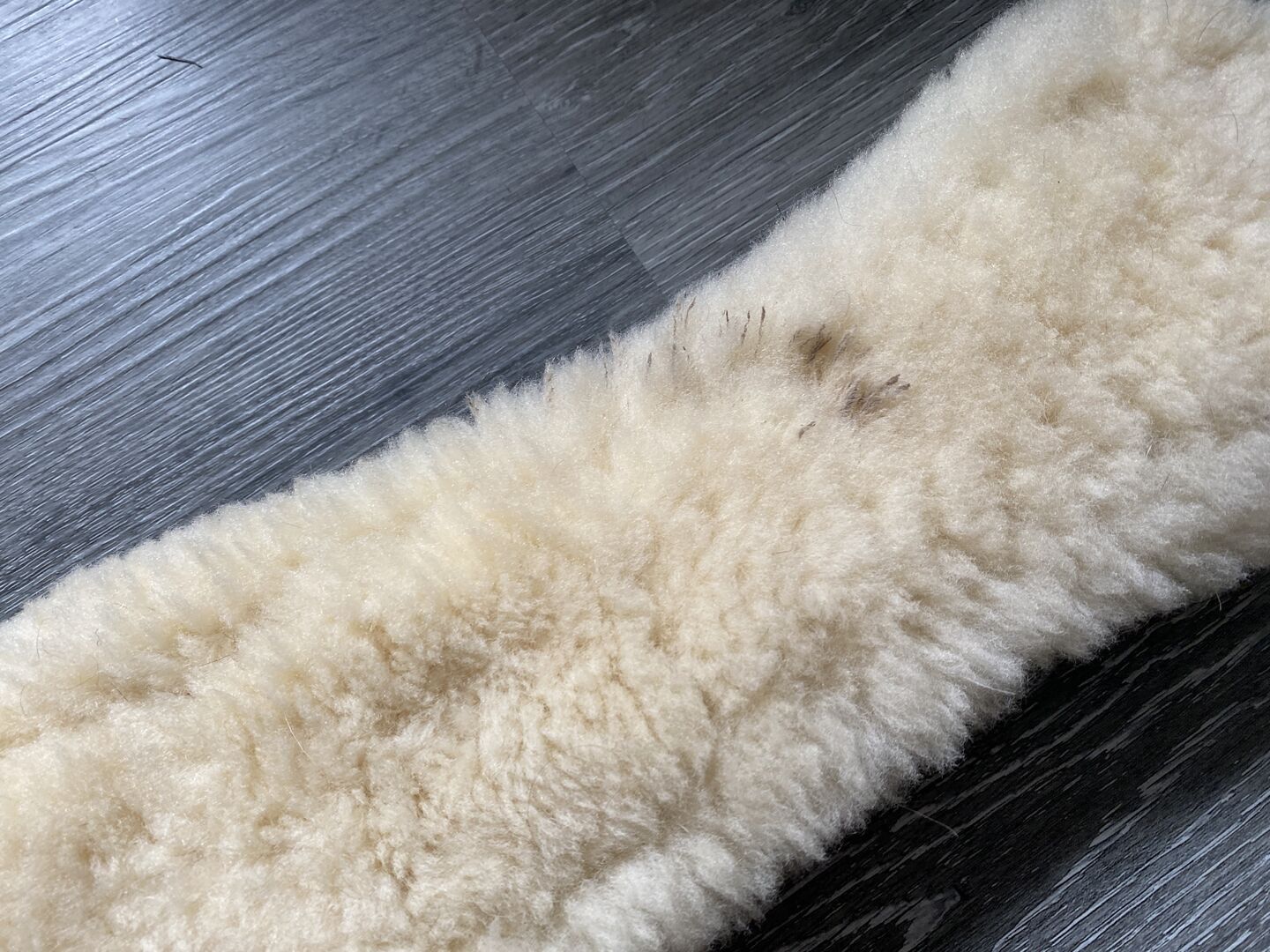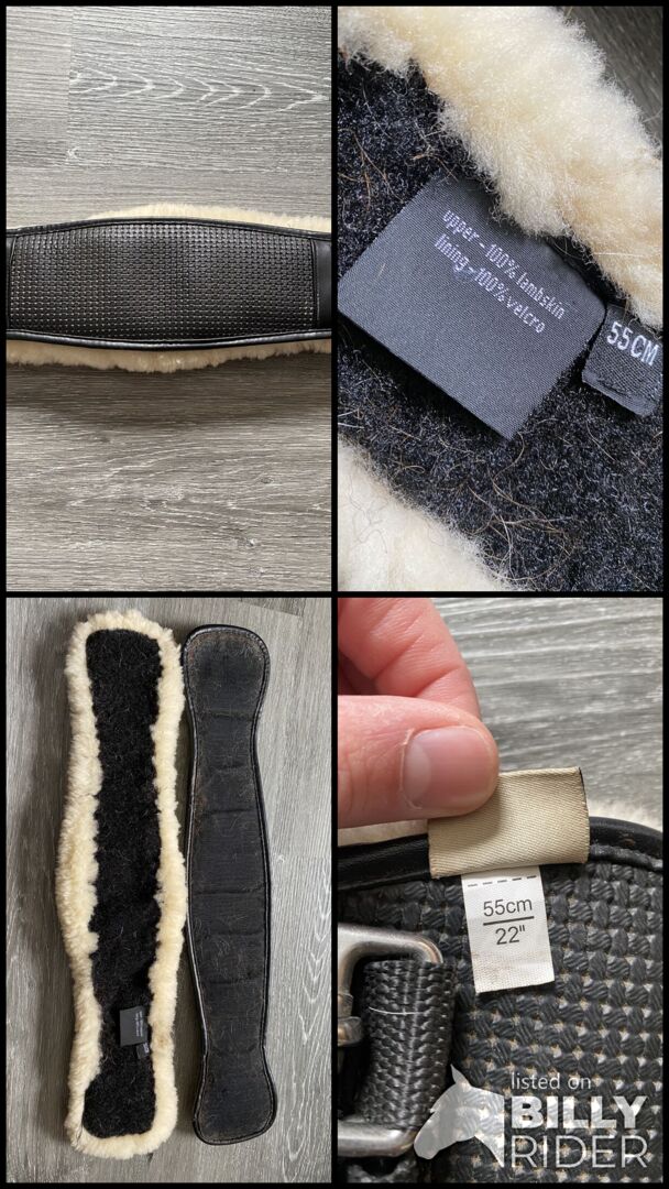 Harry's horse short girth 55cm removable fur - Sell a used but in good condition short girth from Harry's Horse. The girth has a length of 55cm and the fur is removable. The fur is freshly washed with lambskin cleaning agent, unfortunately the girth has 2 small "discolored" places as seen in the last photos. But these are soft and not hard, so they do not rub. Who has a little time, gets these certainly clean again. The buckles have NO rust or anything else. These run nice and free and the Nachgurten thereby falls easily.