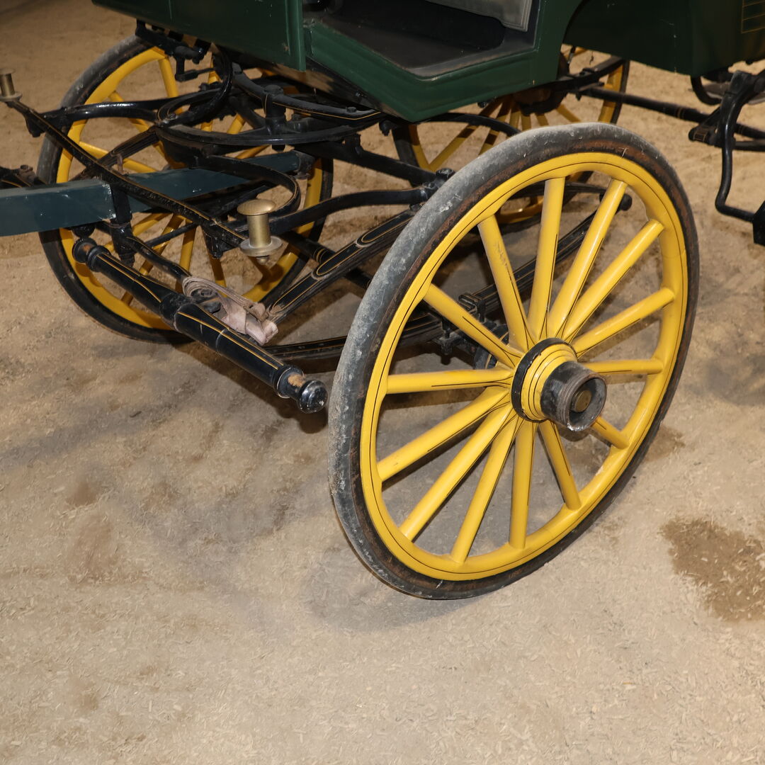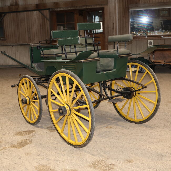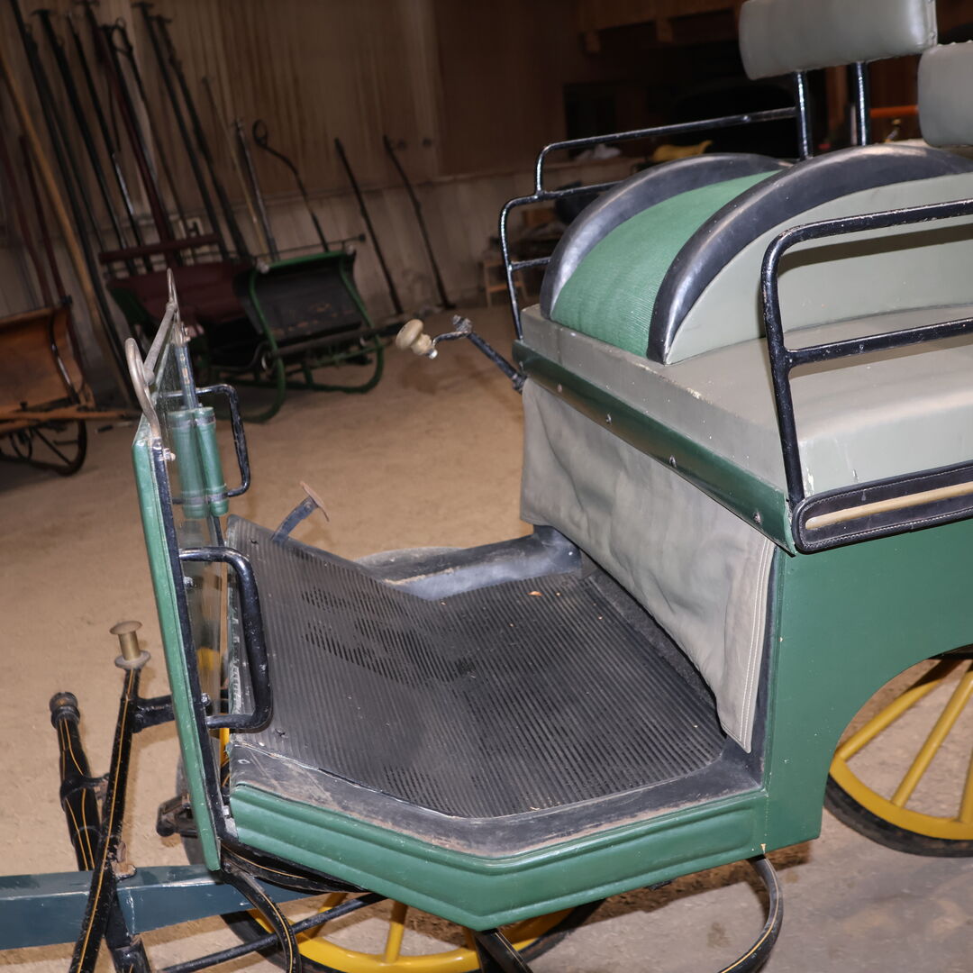 Make: E Wiez Carriage type: Heavy wagonette Carriage type: Horse and carriage Horse type: Large horses Condition: Good condition (paintwork in good condition, upholstery in good condition) Ready to drive: Yes, carriage is fully roadworthy and drives without any problems Color: Dark green with yellow accents Scope of delivery: See pictures
