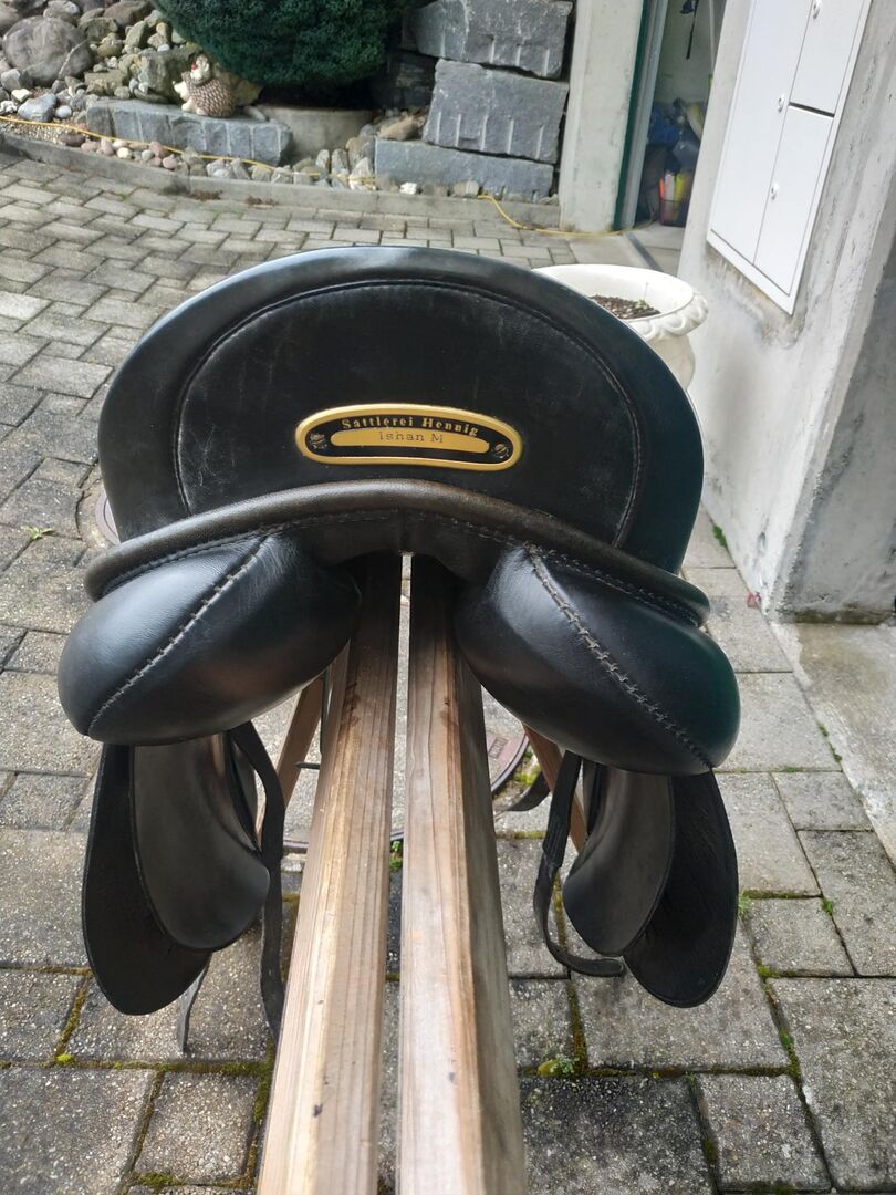 Hennig dressage saddle 17" - Well maintained regularly padded black dressage saddle of the top brand Hennig, size 17", suitable for normal to narrow horses, soft wool panels, generous spine channel, super comfortable seat, lowest point in the right place, regularly serviced and padded by a competent saddler. Saddle can be easily adjusted by saddler. The saddle can be tested for a few days for a deposit of the purchase price. Shipping possible, then plus shipping costs