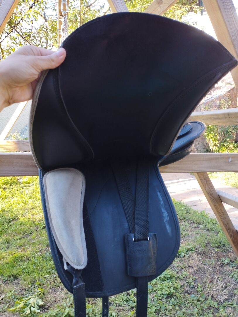 The saddle has the size 19 inches, which is about 17.5 inches (dress size 38/40).