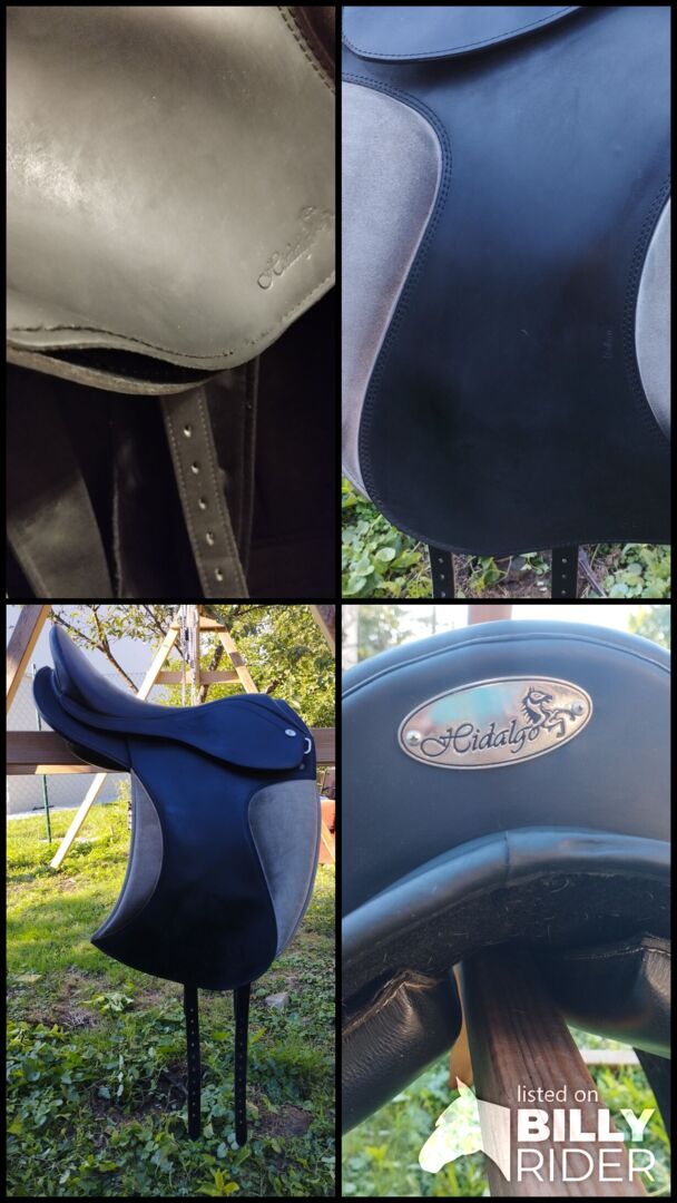 Hidalgo Mallorca special leather tree saddle - I sell my two year old leather tree saddle from Hidalgo. It was made of black wax leather and gray suede. The Mallorca Special with antique tail is a real eye-catcher. It meets the high demands and full individuality. The saddle is also suitable for difficult back shapes and high withers. Leather tree saddles adapt to the horse's back. The panels are individually adjustable thanks to Velcro. New price is currently 2.540€. / I give it away cheaper, although it was little used, because the stirrup leathers have broken the seams on the leather (see last photo). However, this can be fixed at a leather repair store if you want. My Lipizzaner mix mare is retired due to colic surgery :)